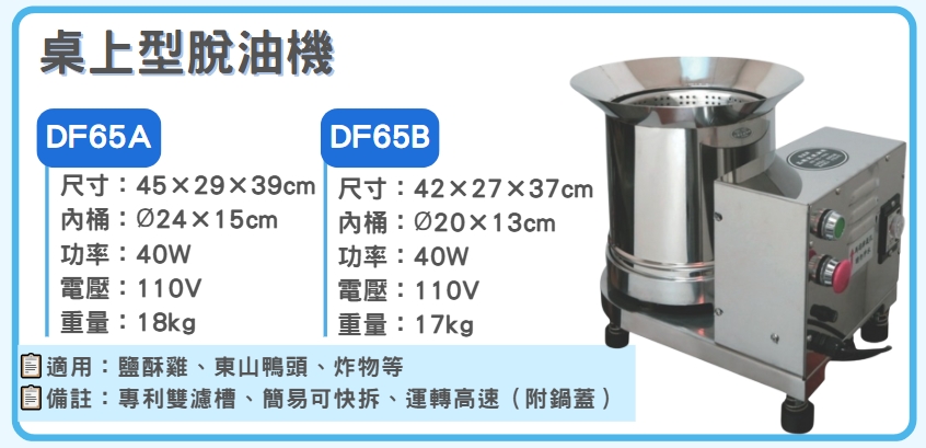 脫油槽:直徑20*13公分(DF65B)